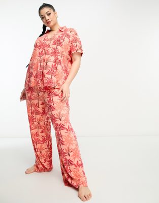 Wellness Project x Chelsea Peers Plus palm print wide leg pajama set in burnt orange