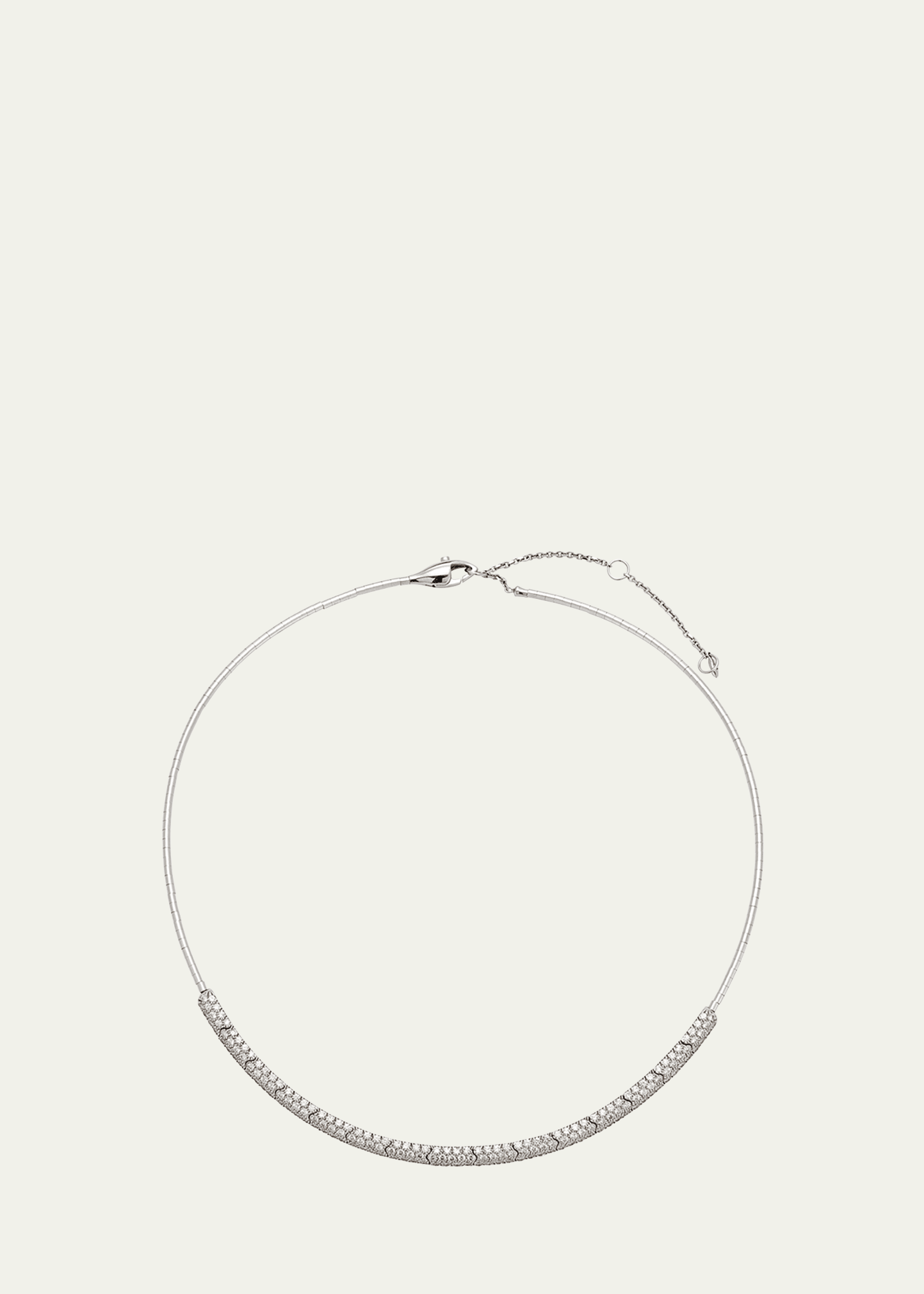 Mattia Cielo half-diamond necklace. Titanium and 18-karat white gold. G-VS round brilliant-cut diamonds. 2.20 total diamond carat weight. Approx. 17.5"L. Made in Italy.