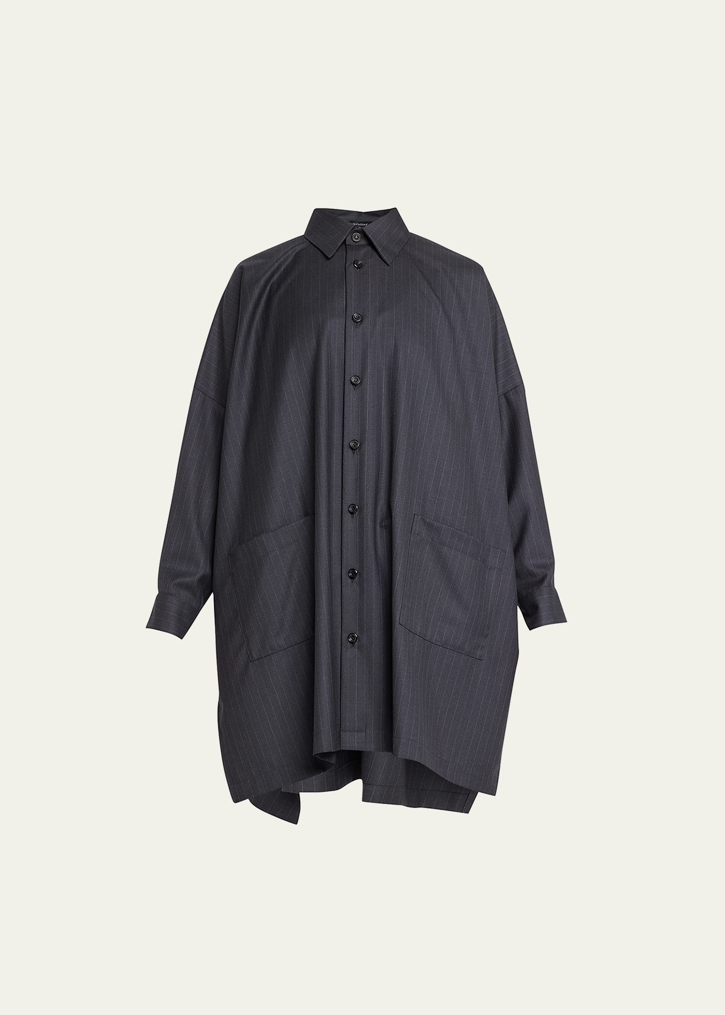 Wide Longer-Back Shirt Jacket With Collar And Slits (Very Long Length)