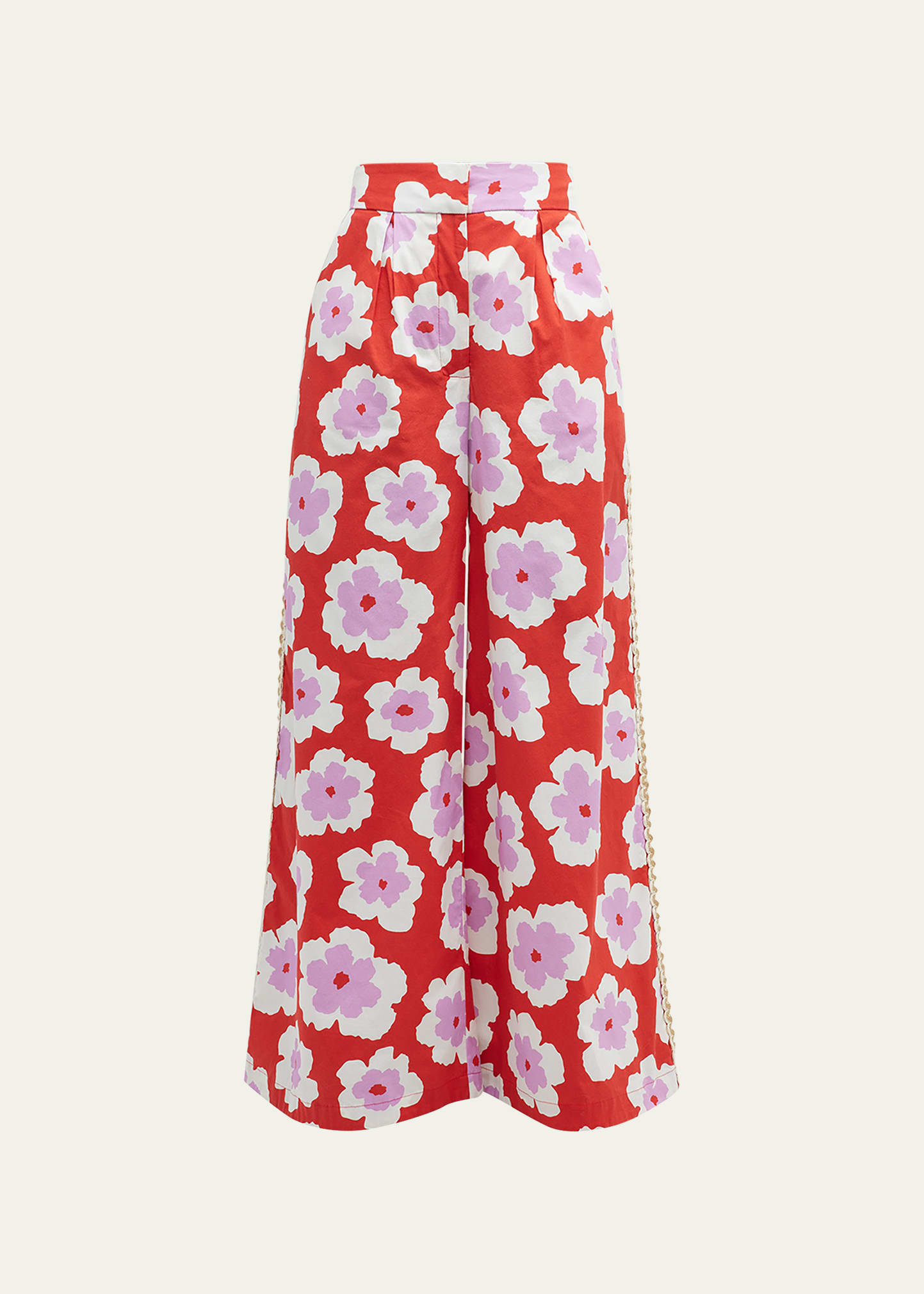 PatBO "Windflower" pants feature jute-trimmed sides Approx. 30.7" inseam High rise Flat front Side slanted pockets Full length Wide legs Concealed hook/zip fly Cotton/elastane Made in Brazil