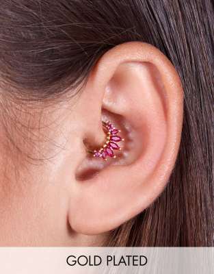 With Bling Exclusive 18k gold plated marquise 8mm clicker hoop piercing with pink crystal