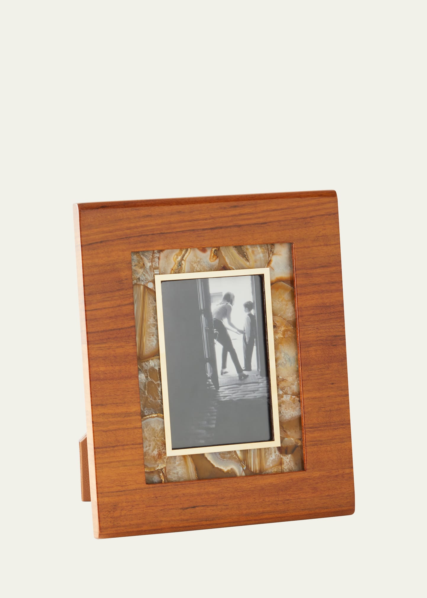 New for fall, the golden teak wood and white agate frame combination is perfect for any home! Pebble grain leather backing Approx. 5"L x 7"W Holds one 5x7 photograph Item Weight (Lbs.): 1.0 Imported