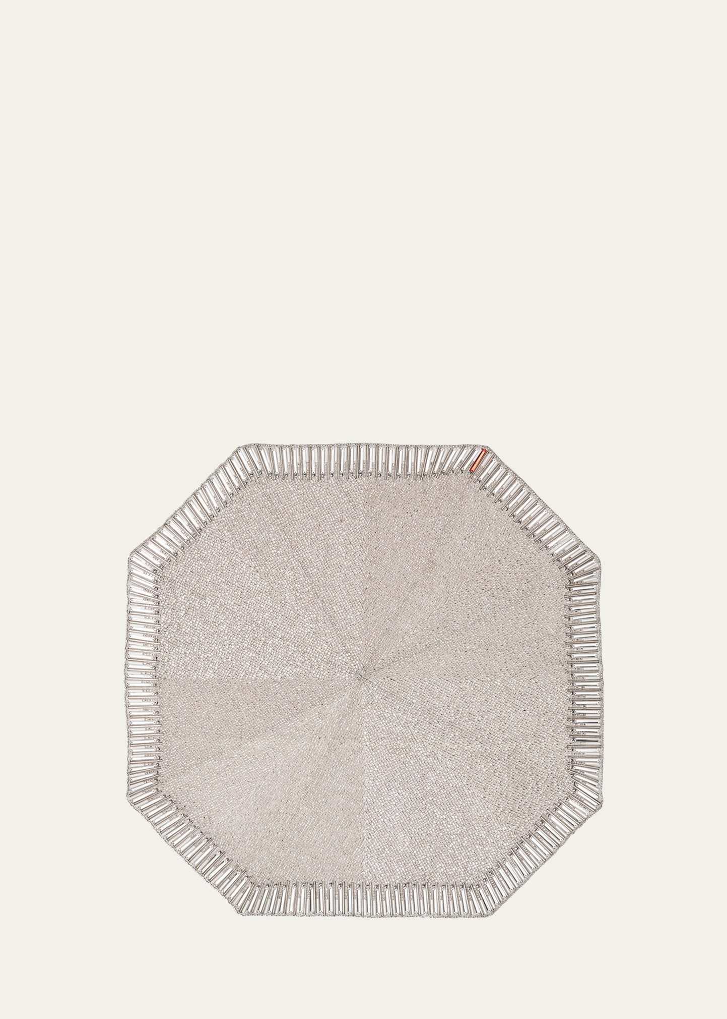 Inspired by the signature of all Baccarat chandeliers, the octagonal tassel has been translated into a beaded placemat. The Baccarat x Kim Seybert "Louxor" placemat mimics the angular cuts and geometric facets of the crystal pieces that adorn the world-renowned chandeliers. Glass and acrylic beads are hand-applied in a pattern that captures the reflective quality of a cut diamond-shaped. A halo of linear beads borders the beaded placemat, adding an element of refined sophistication. The Bacca.
