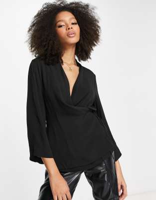 Blouses by Y.A.S Introduce it to your other nice tops Plunge, wrap front Long sleeves Tie waist Regular fit