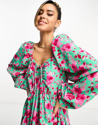 Dresses by Y.A.S All other dresses can go home Sweetheart neck Puff sleeves Ruched tie front Shirred, stretch panel to back Regular fit