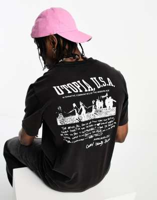 Coney Island Picnic short sleeve t-shirt in black with utopia chest and back print