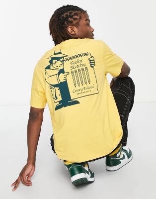 Coney Island Picnic sketchy t-shirt in dusty yellow with chest and back print