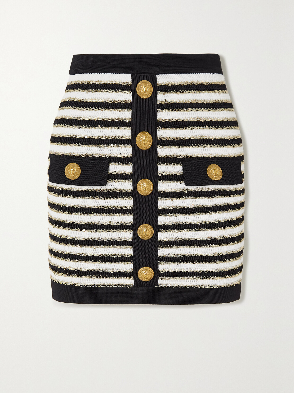 Balmain - Button-embellished Jacquard-knit Mini Skirt - Black