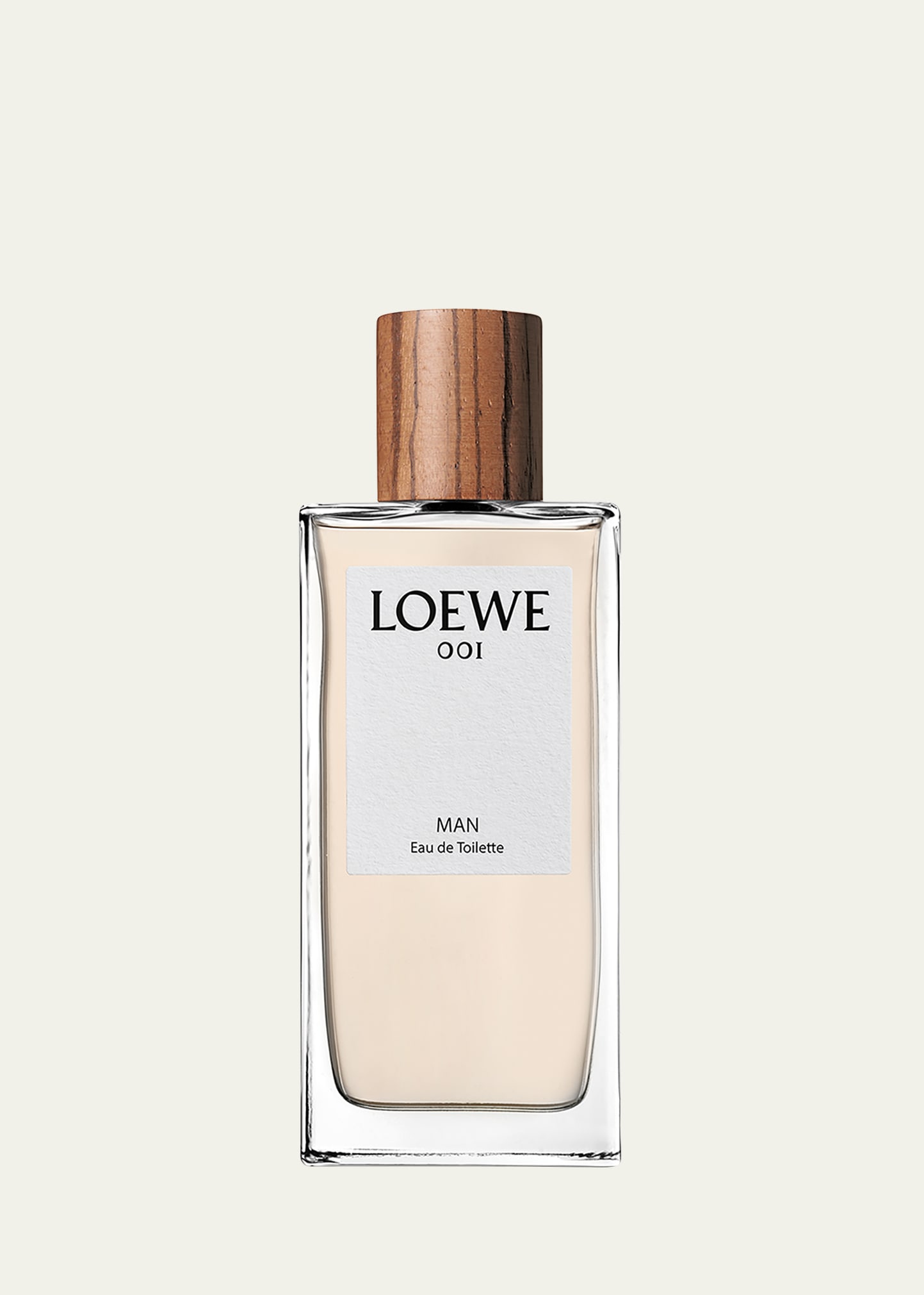 Loewe 001 Man Eau de Toilette, 3.4 oz. Loewe 001 is a family of fragrances inspired by new beginnings and early morning light. Fragrances to share. Disruptive and modern, Loewe 001 Man Eau de Toilette combines notes of musk, sandalwood, and lavender. The lightest and most citric version of Loewe 001 Man. The scent comes encapsulated by a clean, translucent glass block-shaped flask in a shade of pale brown. 3.4 oz./ 100 mLDesigner About Loewe: PAST. LOEWE began as a cooperative of leathe.