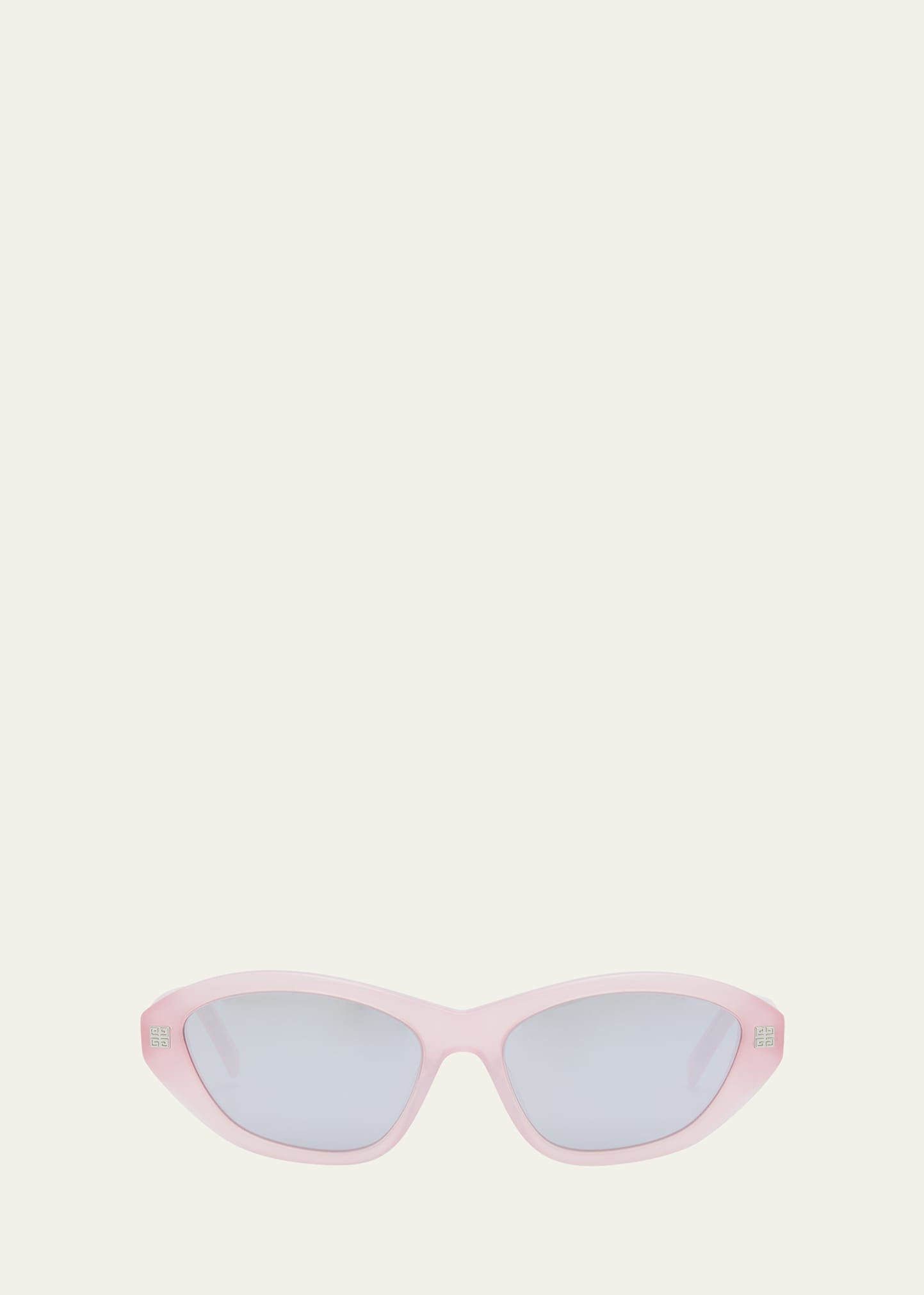 Givenchy feminine cat-eye sunglasses in acetate Features a discreet 4G metal signature on the front Lens/bridge/temple (in mm): 55-17-140 Saddle nose bridge Logo on temples Thin, tapered arms 100% UVA/UVB protection Imported