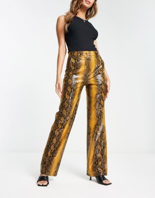 4th & Reckless leather look wide leg pants in orange snake-Multi