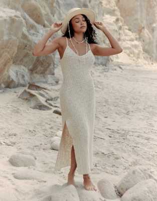 4th & Reckless x Loz Vassallo jayde knit maxi summer beach dress in beige-Neutral