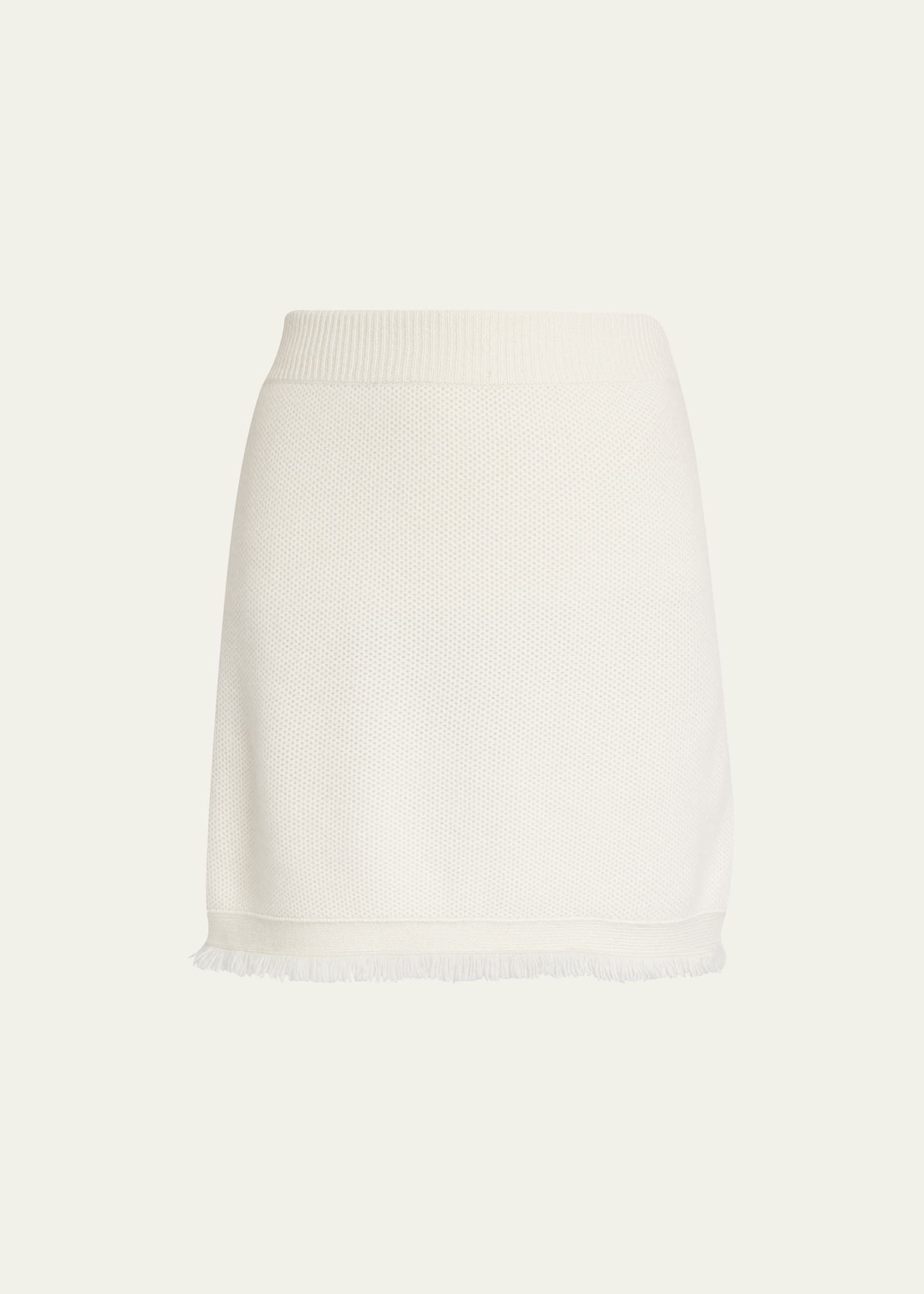 Lisa Yang "Adela" plain knit skirt complete with a frayed hem Elasticized waistband Straight silhouette Mini length Pull-on style Cashmere Hand wash Imported