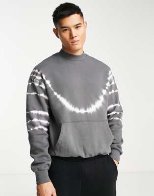 ADPT washed oversized mock neck sweatshirt with tiedye in dark gray