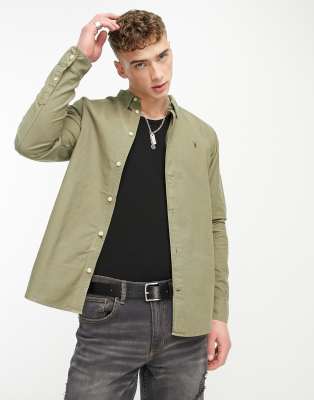 Shirts by AllSaints Waist-up dressing Spread collar Button placket Logo embroidery to chest Buttoned cuffs Regular fit