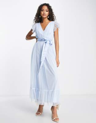 Dresses by Anaya Bride approved V-neck Flutter sleeves Tie waist Regular fit