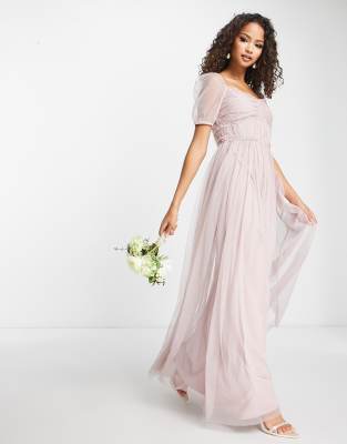 Anaya Bridesmaid puff sleeve maxi dress in muted blush-Pink