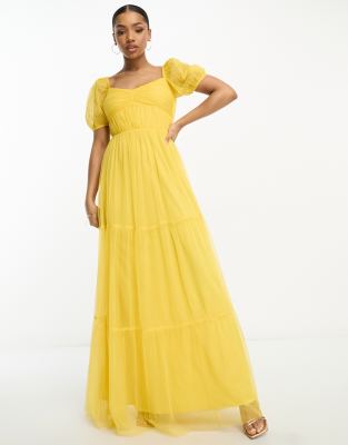 Anaya tulle maxi dress with sweetheart neckline in yellow