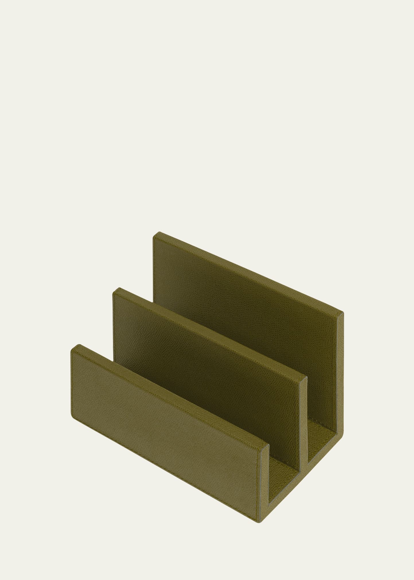 Envelope holder made of wood composite and calf leather Approx. 7.4"L x 4.7"W Wipe clean with a sponge or cloth. Made in Italy Item Weight (Lbs.): 1.0