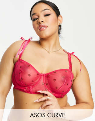 Plus-size bra by ASOS DESIGN Anything but basic Jacquard glitter hearts Non-padded cups Underwire support Adjustable, tie straps Hook-and-eye closure Nipple covers not included