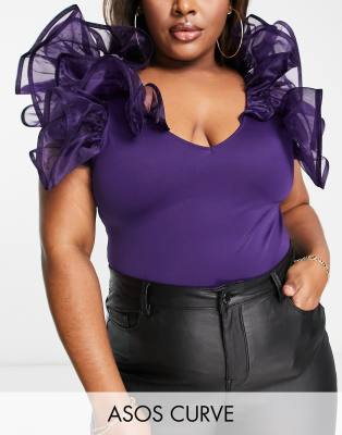 Tops by ASOS Curve It's a yes from us V-neck Organza sleeves Thong cut Body-conscious fit