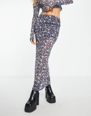 ASOS DESIGN mesh midi skirt in purple ditsy floral print - part of a set-Multi