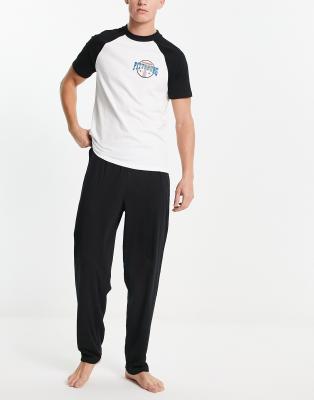 ASOS DESIGN pajama set in black with white raglan T-shirt and Pittsburg print