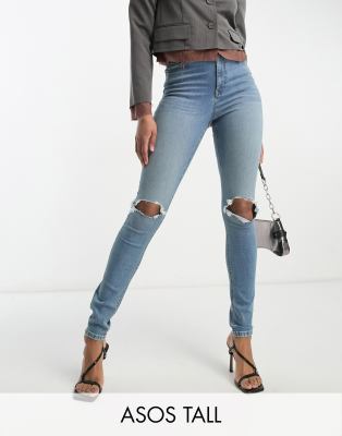 Jeans by ASOS Tall The denim of your dreams Skinny fit High rise Belt loops Functional pockets Ripped knees
