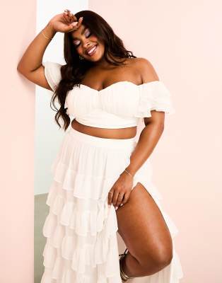 ASOS LUXE Curve beach ruched bralette with tiered sheer sleeves in white - part of a set