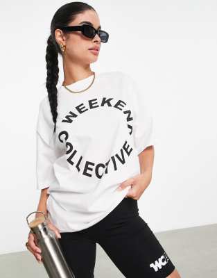 ASOS Weekend Collective oversized t-shirt with round logo in white - WHITE