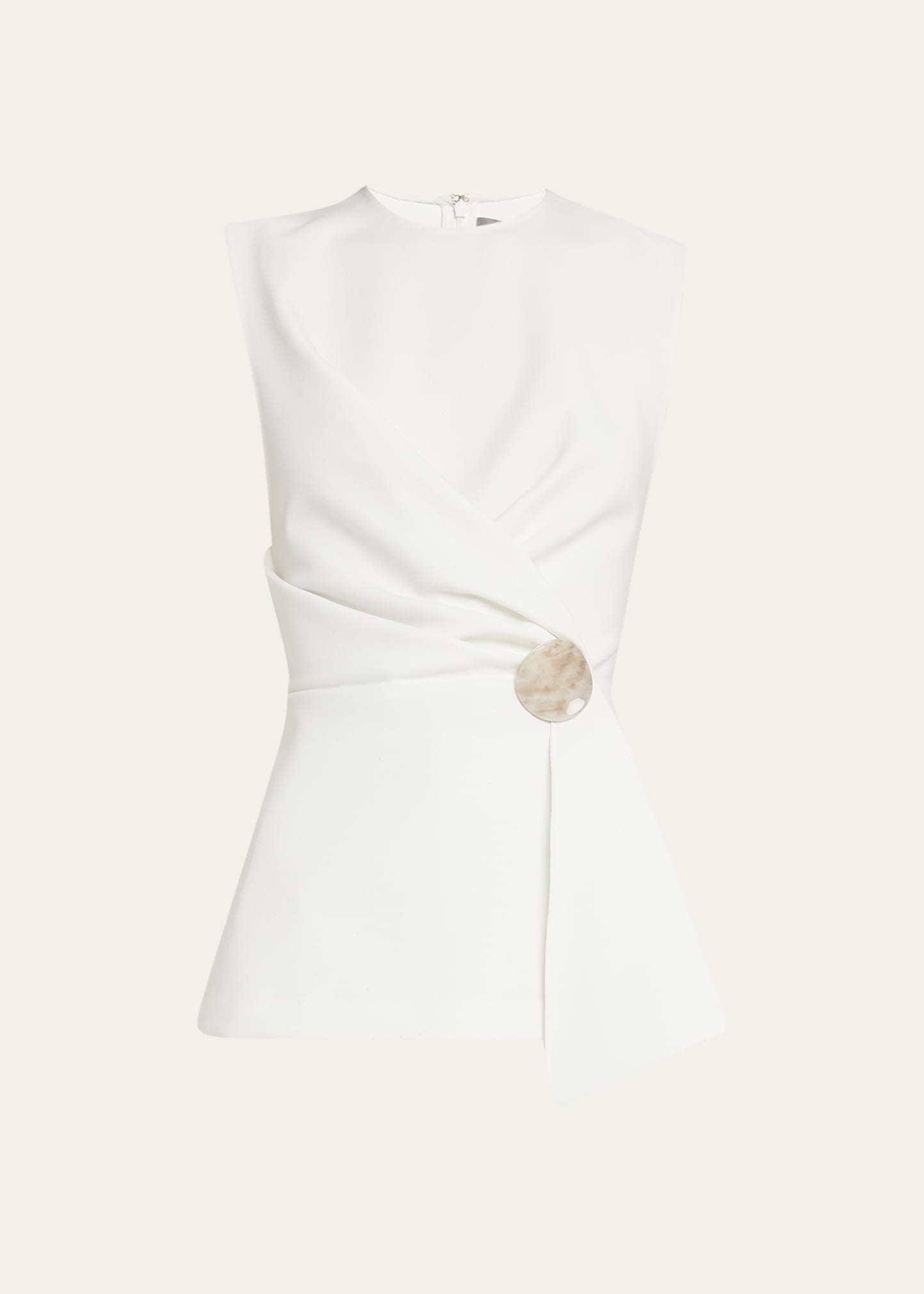 Lela Rose asymmetric top features an oversize detailed button Crew neckline Sleeveless Gathered waist Mid length Semi-fitted Polyester/viscose/elastane Unlined Dry clean Made in USA from imported materials
