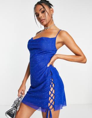 Dress by AsYou Exclusive to ASOS Rhinestone design Cowl neck Adjustable, cross back straps Lace-up side Regular fit