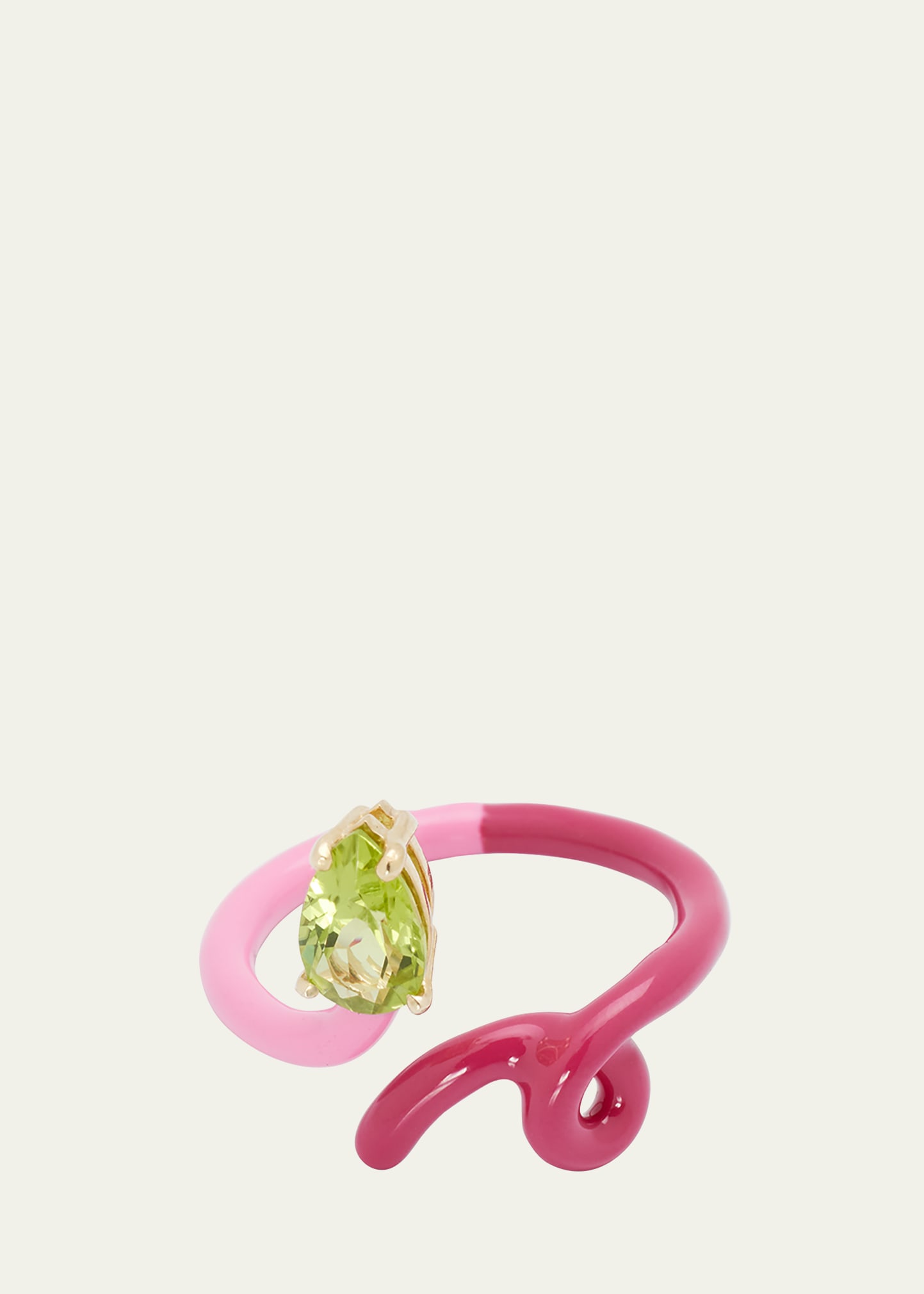 B Vine Ring in Bubblegum Pink and Amarena Enamel with Peridot Drop