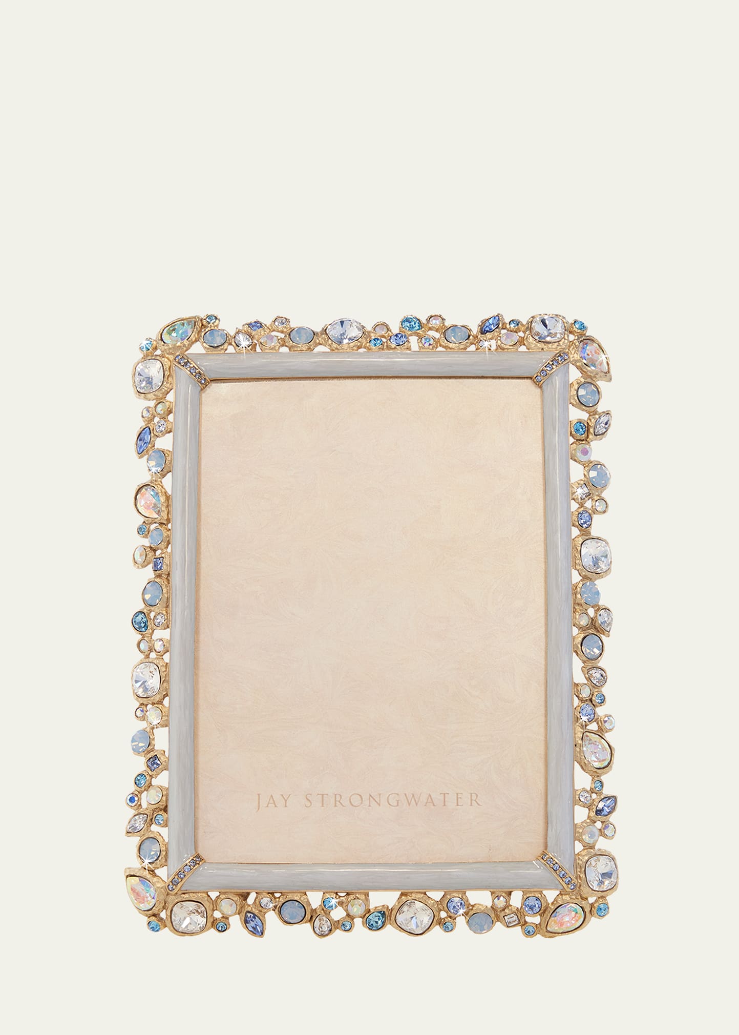 A new addition to our bejeweled collection of frames with Swarovski® crystals; baby blue Frame is made from pewter Made in the USA