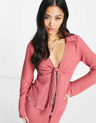Tops by Bailey Rose Part of a co-ord set Skirt sold separately Spread collar Tie front Lettuce-edge trim Regular fit