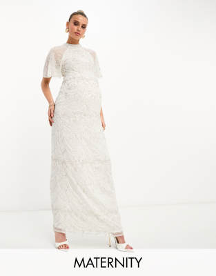 Dresses by Beauut Aisle approved Round neck Flutter sleeves Faux-pearl details Keyhole back Zip-back fastening Slim fit