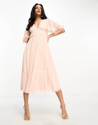 Dresses by Beauut Bride approved V-neck Flutter sleeves Frill trim Regular fit