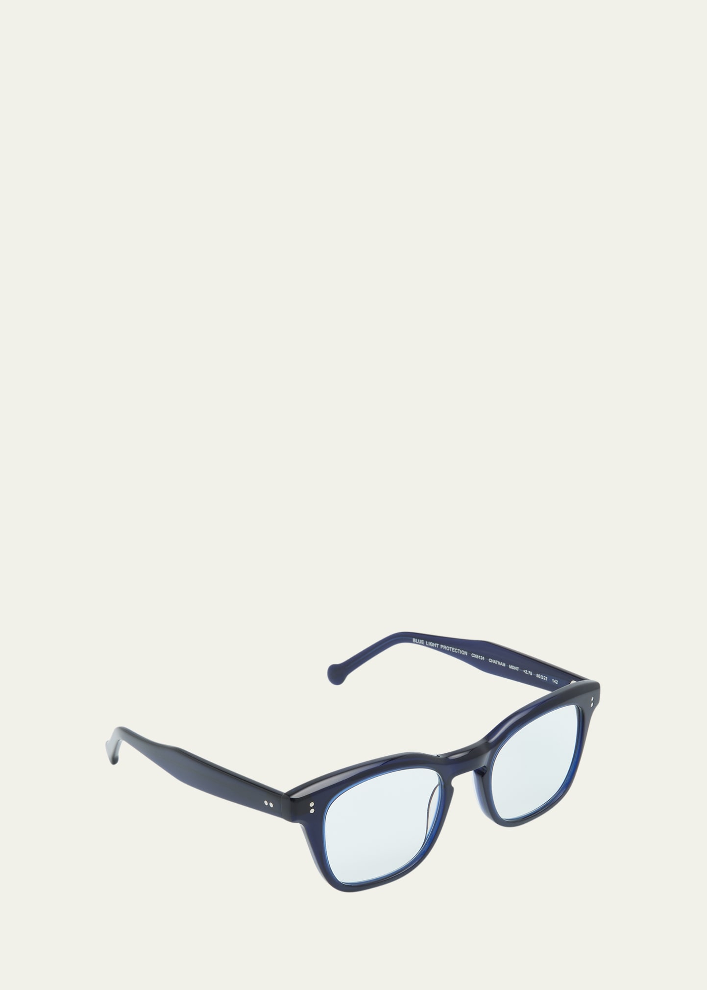 Colors In Optics square reading glasses in acetate Lens/bridge/temple (in mm): 50-21-142 Ready-to-wear clear lenses enhanced by a blue coating able to reduce the risks related to blue light exposure from LED screens Reader strength: +2.75 Diamond-shaped temple pin Keyhole on frame front Thin, tapered arms Engraved logo on earpieces Imported