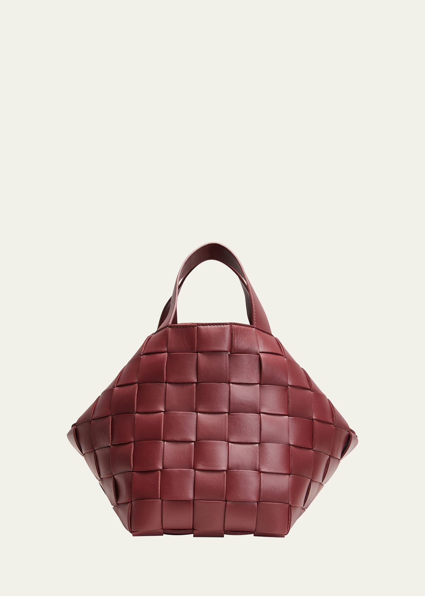 Bottega Veneta "Bowling Cassette" shoulder bag in intrecciato lambskin leather Flat top handles Adjustable shoulder strap Can be worn as a top handle or shoulder bag Zip top closure Interior, one slip pocket Approx. 8.3"H x 11"W x 6.5"D Made in Italy