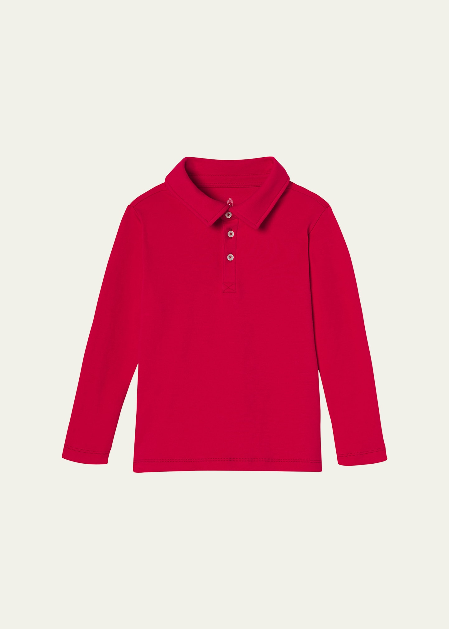 Rachel Riley "Hayden" knit polo shirt Spread collar Long sleeves Button placket Pullover style Pima cotton Imported