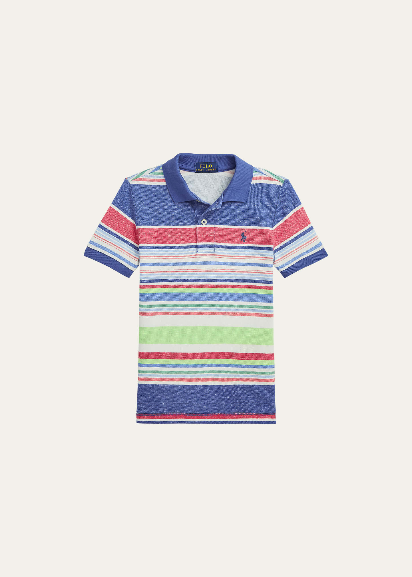 Ralph Lauren Childrenswear mesh polo shirt in multicolor stripes with signature embroidered pony at chest Collared neckline Short sleeves Button placket Straight hem Contrast trim Cotton Imported