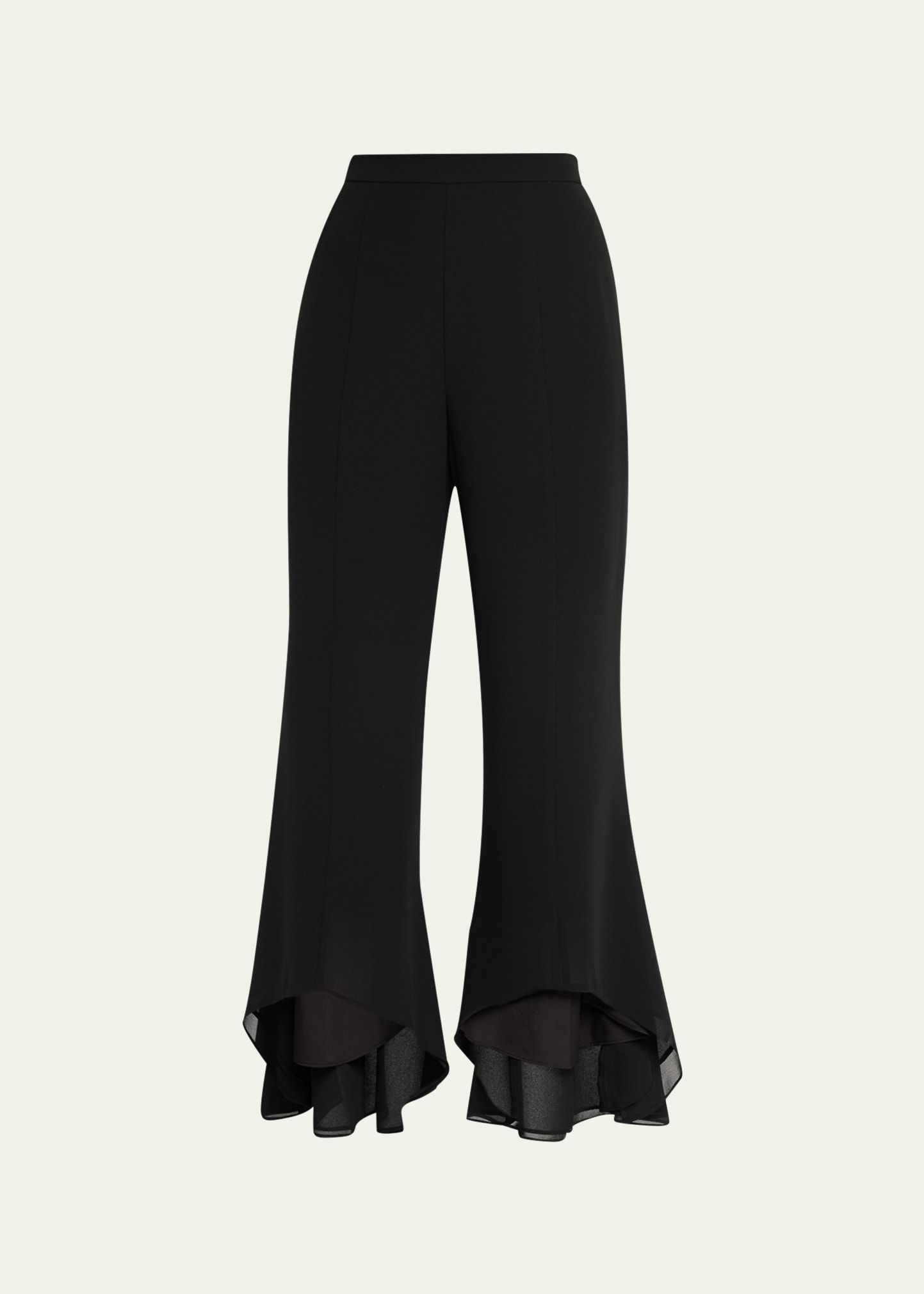 Kobi Halperin "Brookie" pants with high-low hems Approx. 30" inseam Mid-rise sits high on the hip Flat front Full length Flared legs Zip closure Polyester Lining: Polyester Dry clean Imported