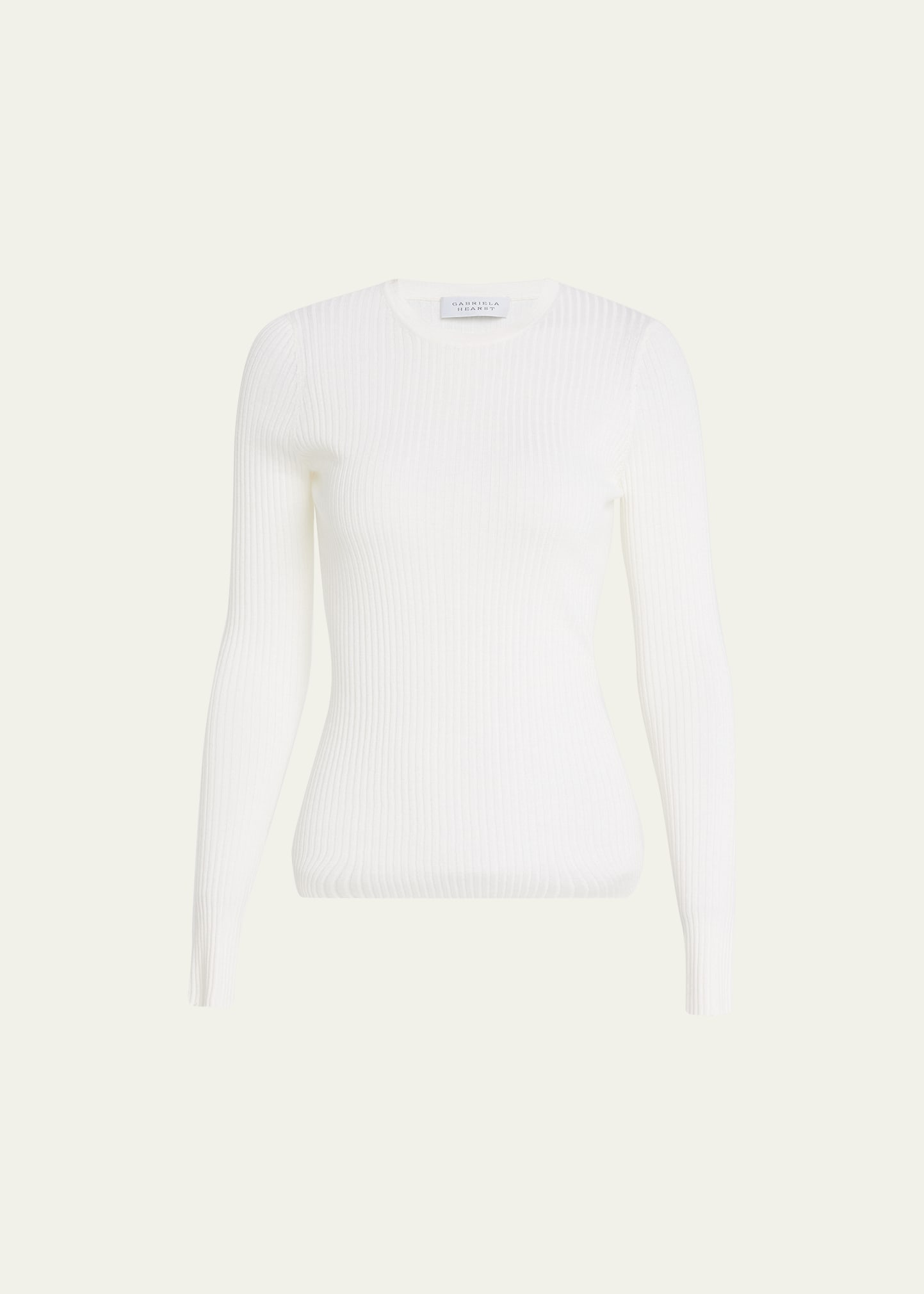 Gabriela Hearst "Browning" ribbed knit top in a cashmere blend Crew neckline Long sleeves Hip length Fitted silhouette Pullover style Cashmere/silk Imported