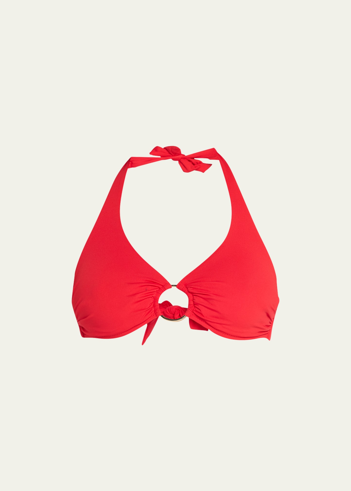 Melissa Odabash "Brussels" classic bikini top detailed with a goldtoned ring hardware at center bust Halter neckline; self-ties behind the neck Built-in underwire Mid-back self-ties Polyamide/elastane Hand wash Made in Italy Bottoms sold separately