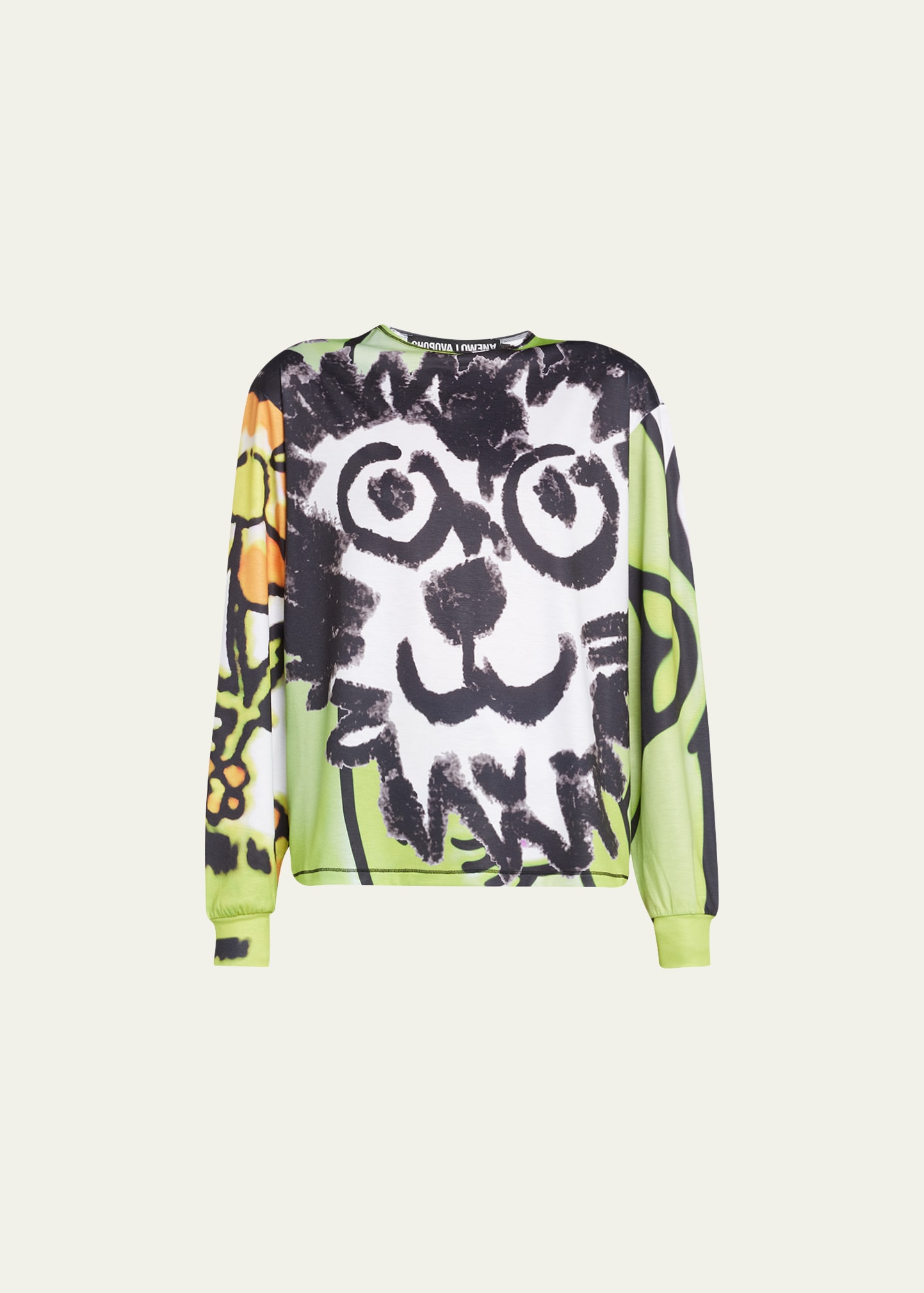 Chopova Lowena jersey T-shirt with bunny graphic Crew neckline Long sleeves Drop shoulders Oversized fit Pullover style Polyester/elastane Made in Bulgaria