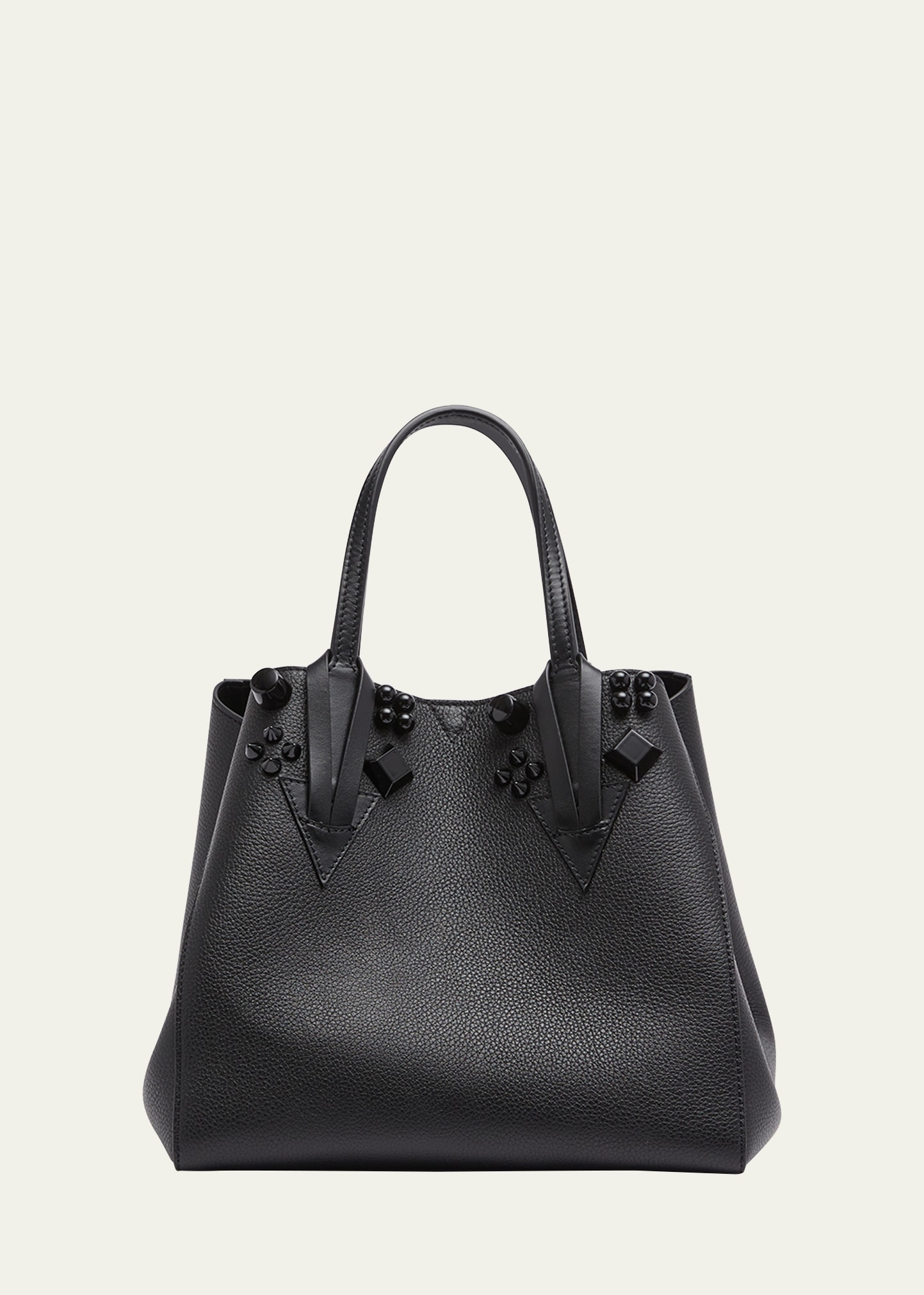 Christian Louboutin "Cabachic" top handle bag in leather Flat top handles with tonal couron spikes Open top with lobster clasp closure Interior, one slip pocket Approx. 9.1"H x 9.8"W x 9.8"D Made in Italy