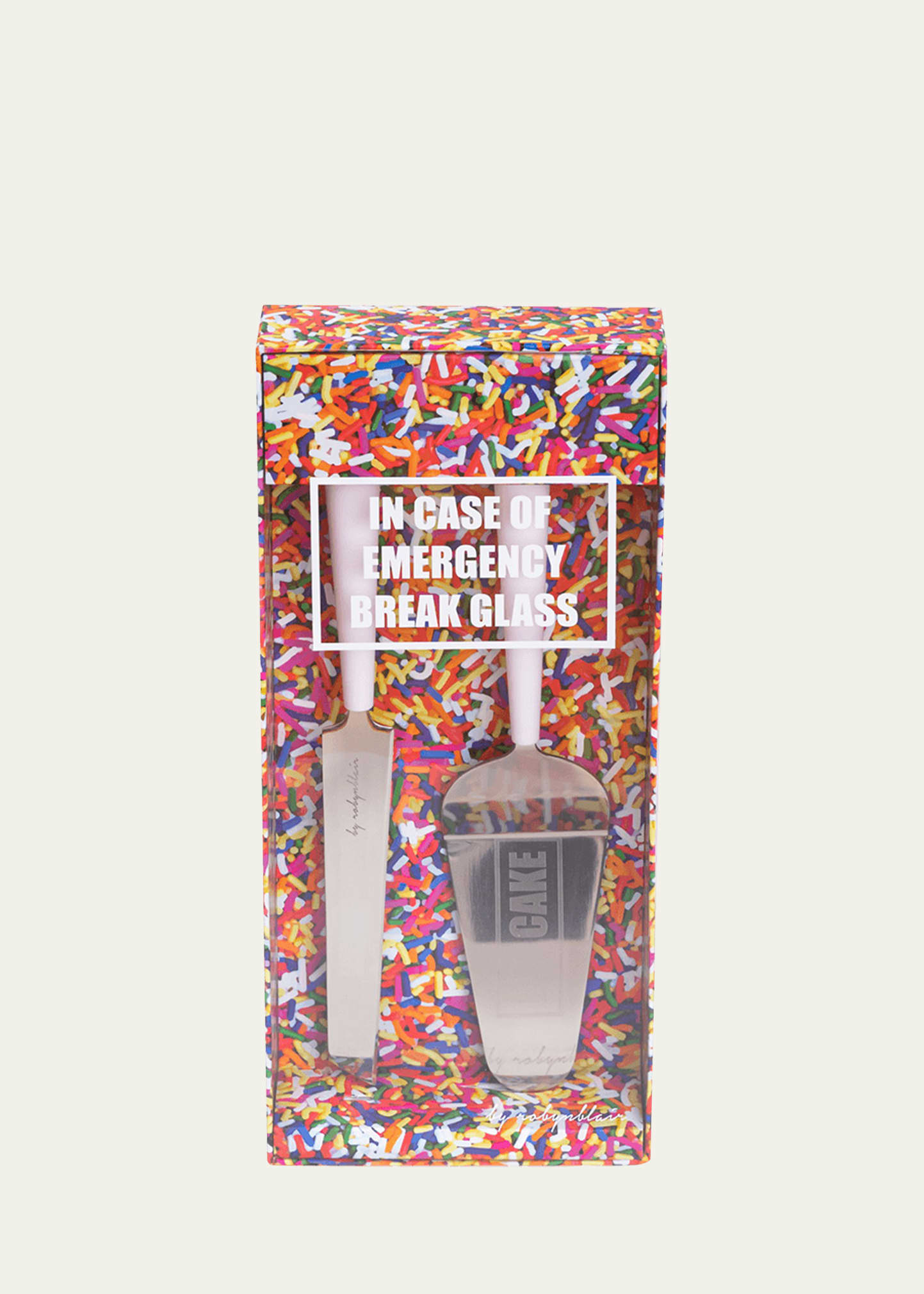 Have your cake and eat it too with by robynblair's two-piece dessert serving set. Each set includes a cake knife and a server with sprinkles on top of the box. Serivng set is made of mirror Approx. 12.6"L x 2.5"W Item Weight (Lbs.): 1.0 Imported