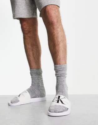 Shoes, Boots & Sneakers by Calvin Klein Jeans Good things come in pairs Slip-on style Wide strap Logo print Open toe Flat sole