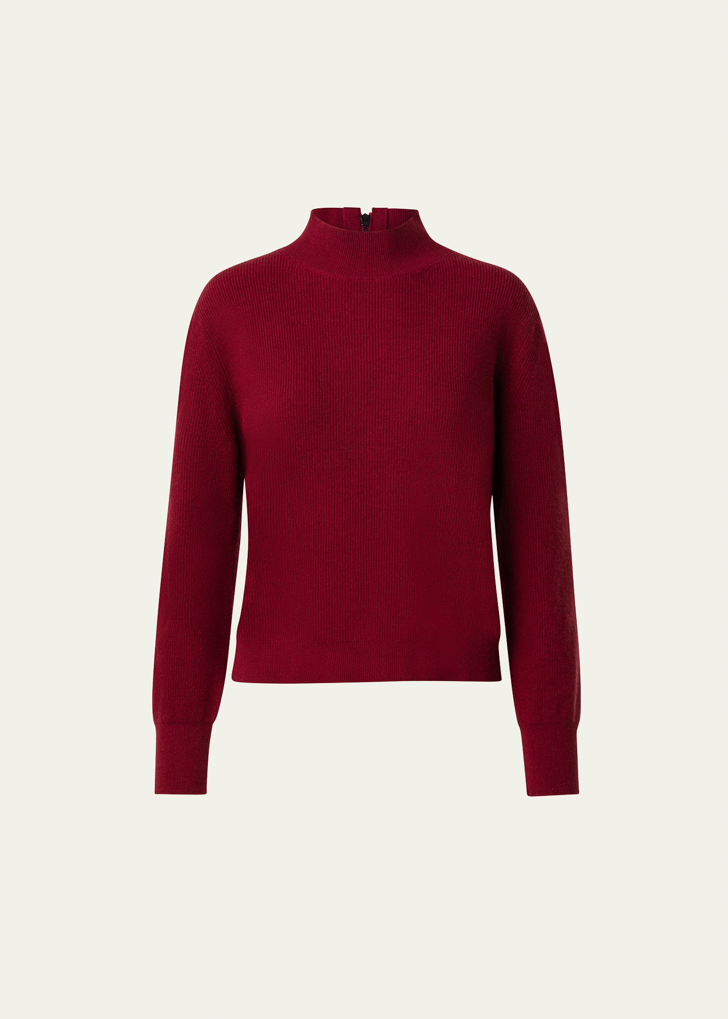 Akris punto knit sweater in a cashmere and wool blend Mock neckline; back zip closure Long sleeves Ribbed trim Hip length Pullover style Relaxed fit Virgin wool/cashmere Imported