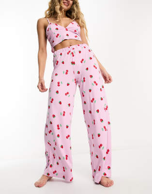 Lingerie & Sleepwear by Chelsea Peers Includes a bralette and pants Cherry print Regular-fit top V-neck Adjustable straps Cropped length Relaxed-fit pants High rise Elasticized waistband